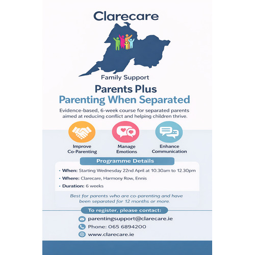 The Parents Plus Parenting When Separated programme is a solution-focused, evidence-based 6-week course designed for separated, divorced, or separating parents. It helps parents navigate co-parenting, reduce conflict, and support their children’s emotional well-being.